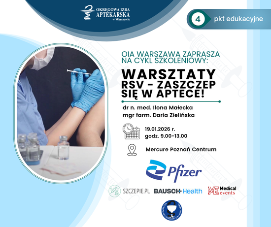 we współpracy z Okręgową Izbą Aptekarską w Warszawie mamy przyjemność zaprosić Państwa na bezpłatny warsztat stacjonarny: